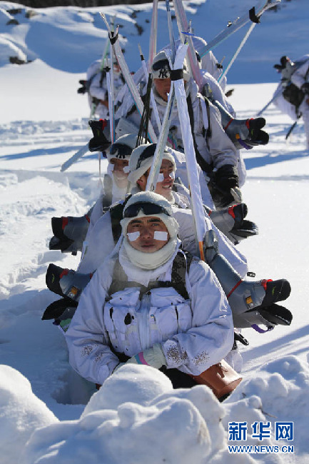 实在没劲拔腿了,就倚在雪上喘口气,卯足卯劲儿在追上。新华社记者王建民摄