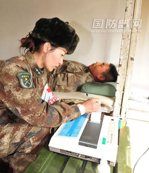 每到一个边防连队,马艳娟就地取材,用药箱作桌子,直接在战士的寝室为大家检查身体。李伟明摄