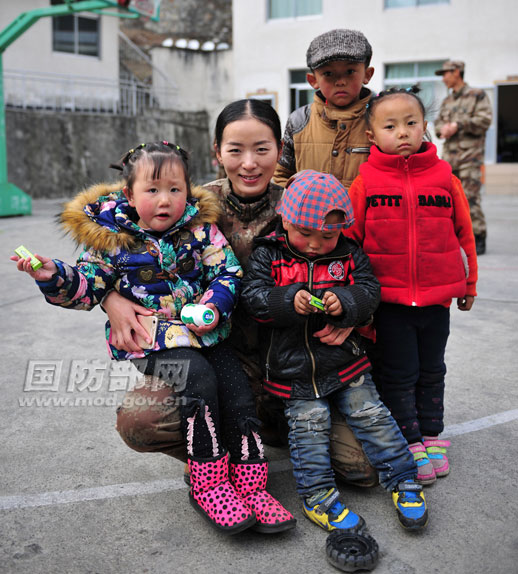 马艳娟和藏区官兵的孩子在一起。李伟明