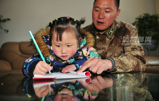 自从到了部队,女儿总是拉着爸爸陪着写作业。李伟明