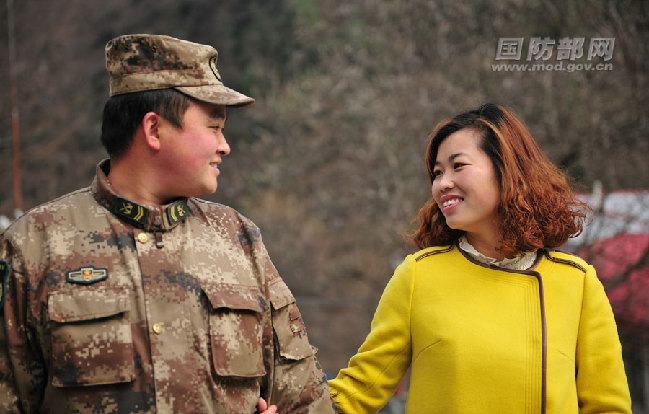 军嫂陈兰,因孩子太小没有带来,自己一路艰辛跑到某边防看望爱人,老公是某边防营工兵班长,晚餐后转路时还手拉着手,真幸福。李伟明摄