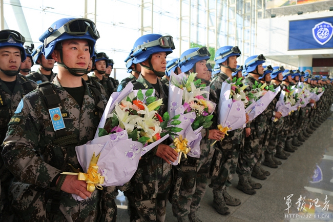 维和步兵营先遣分队官兵整齐列队 周远 摄