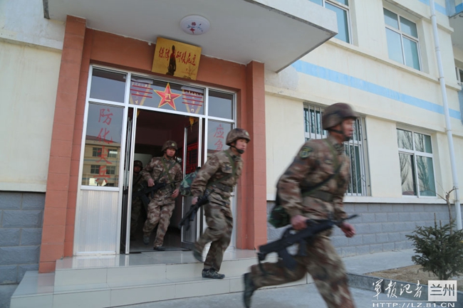中国军网-军报记者兰州分社2月25日电(高方录 王佑年) 彩旗春联不再见,硝烟弥漫战味浓。2月25日是春节收假后的第一天,笔者在兰州军区某防化团看到,一场核生化应急救援演练在尖厉的警报声中拉开战幕。