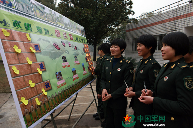 展示靓丽风采,立下成才目标,分享快乐生活,微信墙是女兵心灵家园。吴凯波摄