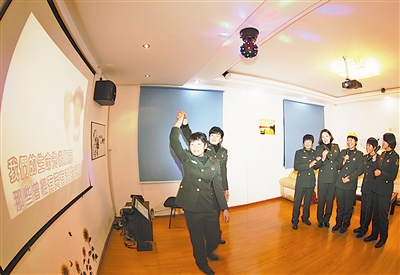 女兵们在“官兵之家”卡拉OK厅举办活动。彭国良 摄
