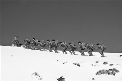 退伍老兵随队上雪山巡逻。 晏良 摄