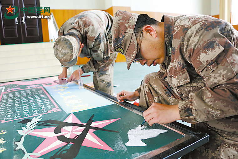 党的十八届五中全会结束后,全军和武警部队通过集中辅导、知识竞赛、板报制作等方法组织官兵学习,并结合实际展开讨论。图为2015年11月17日,第21集团军某红军团开展以学习全会精神为主题的板报制作比赛。袁宏彦 摄
