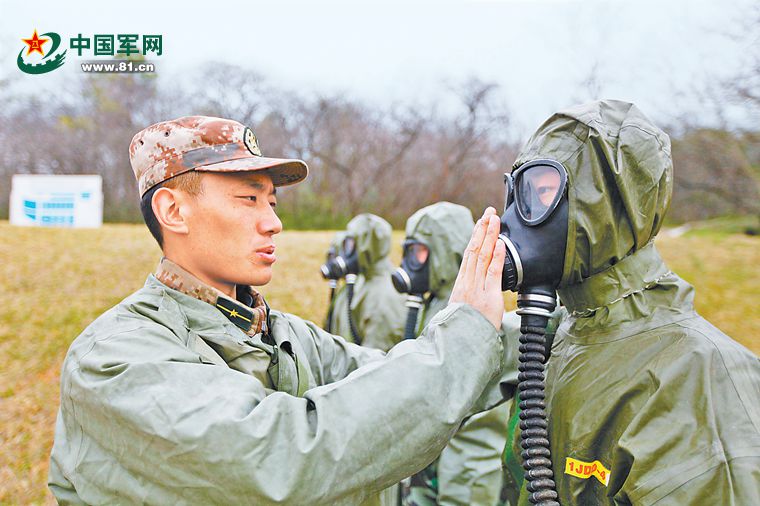 罗尕机组织战士进行防护训练。 陈江瀚摄