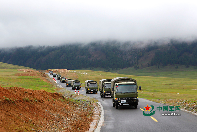 车队行驶在进点的途中