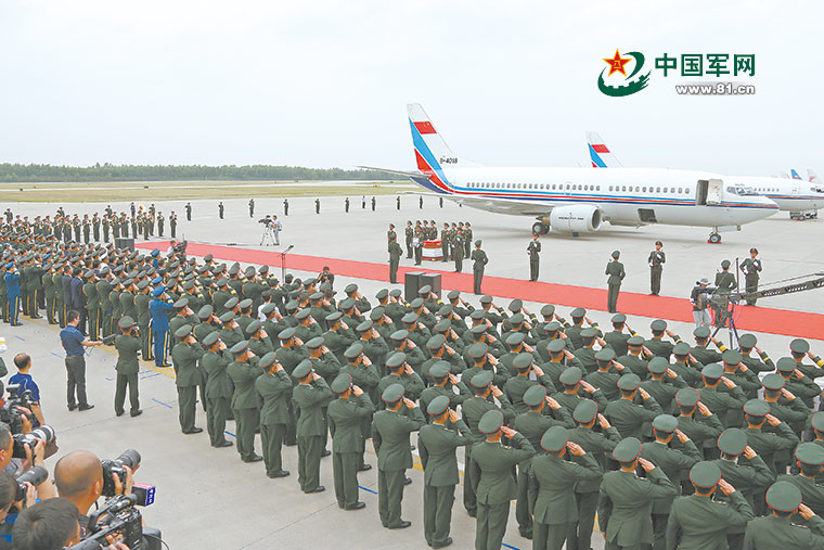 6月9日下午,我赴马里维和部队遇袭伤亡人员回国迎接仪式在吉林省长春市龙嘉机场隆重举行。“敬礼!”在场的官兵举起右手,向烈士致敬。