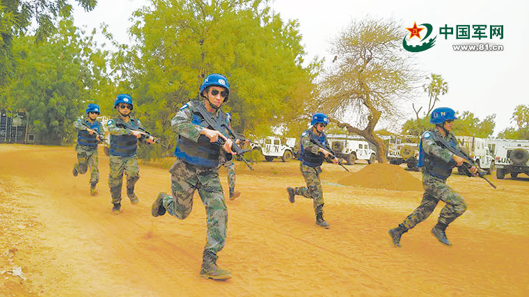 申亮亮生前在马里执行维和任务期间,没有来得及留下一张像样的照片。这是申亮亮的战友在马里营区进行紧急出动演练时的情景,申亮亮生前也是他们中间的一员。