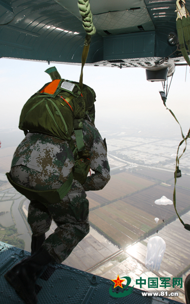 解放军武装跳伞唯美瞬间:白色伞花绽放蓝天