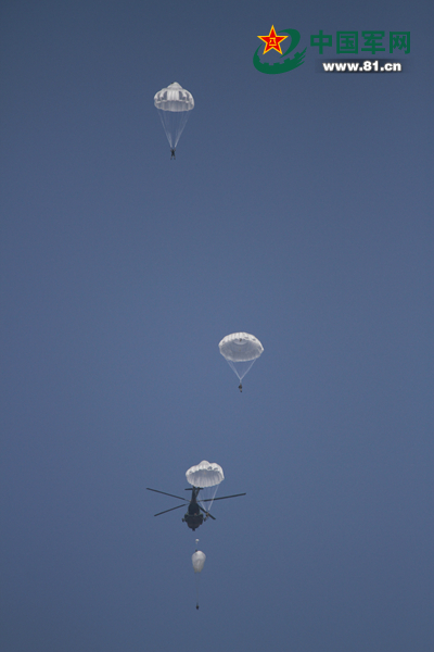解放军武装跳伞唯美瞬间:白色伞花绽放蓝天