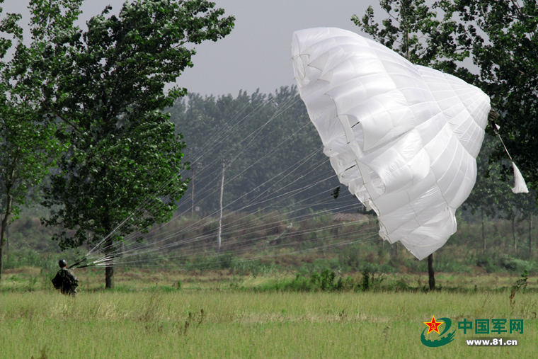 解放军武装跳伞唯美瞬间:白色伞花绽放蓝天