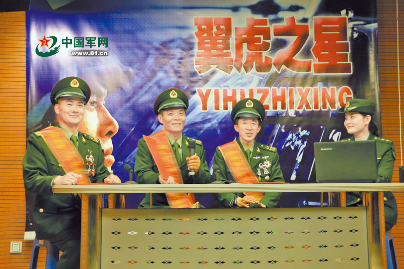 3位肩扛“四道拐”的老兵做客团里自建的“翼虎电视台”,参加访谈节目,分享成长心得。从左至右依次为马西强、项有余、穆永厚。史帅磊 摄