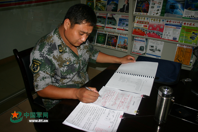 蒋其常利用点滴时间学习。