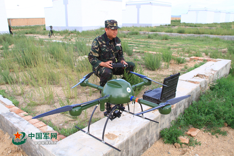杨立功在“砺刃-2013”全军特种部队比武中操纵四旋翼无人机进行侦察。