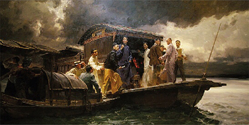 灯光一打,麦克风一开,“红船”驶来了,党史纪念馆的一切好像都活了——李达的夫人王会悟正坐在船头,警觉地四处张望;中共一大代表秘密地围坐在一起,船里不时传出争执声、鼓掌声。突然,船上呼出了那句即将改变中国命运的时代强音“共产党万岁!世界劳工万岁!第三国际万岁!共产主义万岁!”时间永远定格在了中国共产党诞生的那一刻……