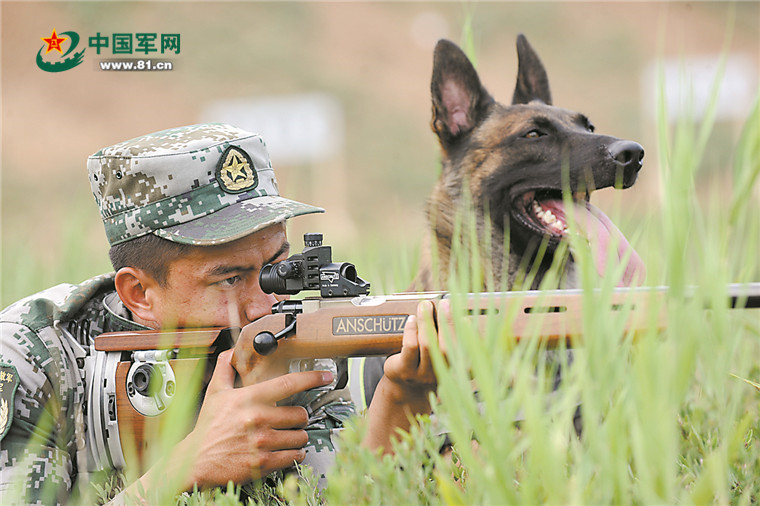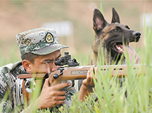 在“忠诚朋友”竞赛的4个课目中,军犬两项个人赛是块难啃的“硬骨头”,参赛队员需要携带军犬完成3200米越野,途中还要运用小口径运动步枪射击50米外的标靶。