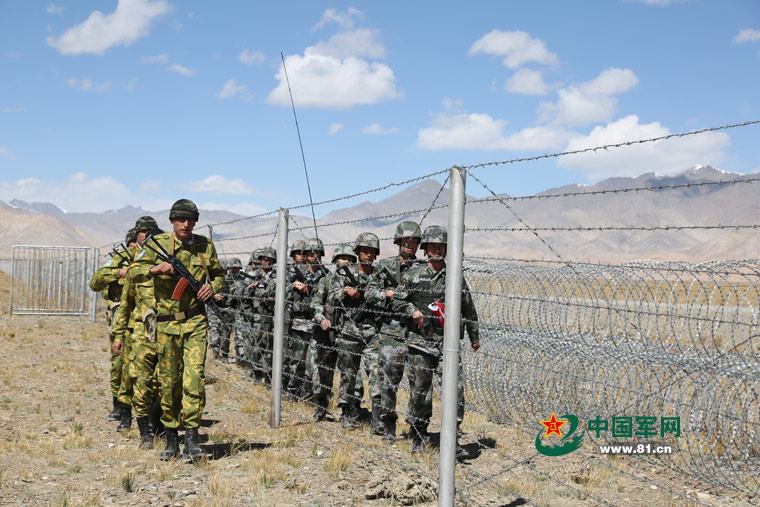 中塔边防官兵联合巡逻共度中秋