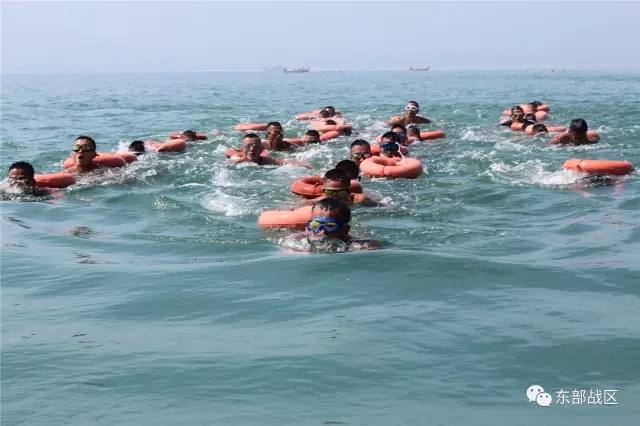 海训期间,单位组织海上长距离蛙泳拉游训练,备战即将到来的集团军海训考核。