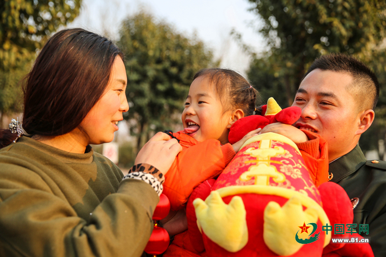 雷达站站长郭邵刚连续4年过节都坚守在自己的工作岗位上,妻子一直在家照顾父母,从来没有任何怨言,今年,组织“命令”他把妻子接到连队来,陪她一起过春节,你看他们一家三口多幸福。
