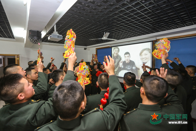 在春节来临之际,官兵通过视屏连线在外休假官兵,向他们及家人送上新年祝福。