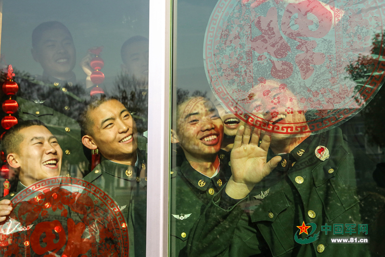 官兵精心扮靓节日营区,贴窗花、春联,张灯结彩,年味浓郁。