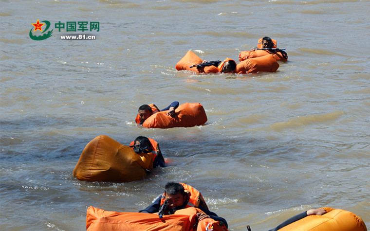 队员进行武装泅渡。程烨 摄