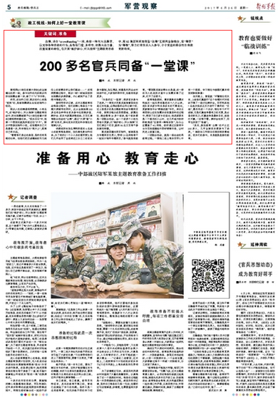 “其实,参加教育‘众筹’的不止这200多人,几乎全旅官兵都参与了进来。”旅政治工作部主任高安栋欣喜地说,官兵们的参与,本身就是直接的教育。
