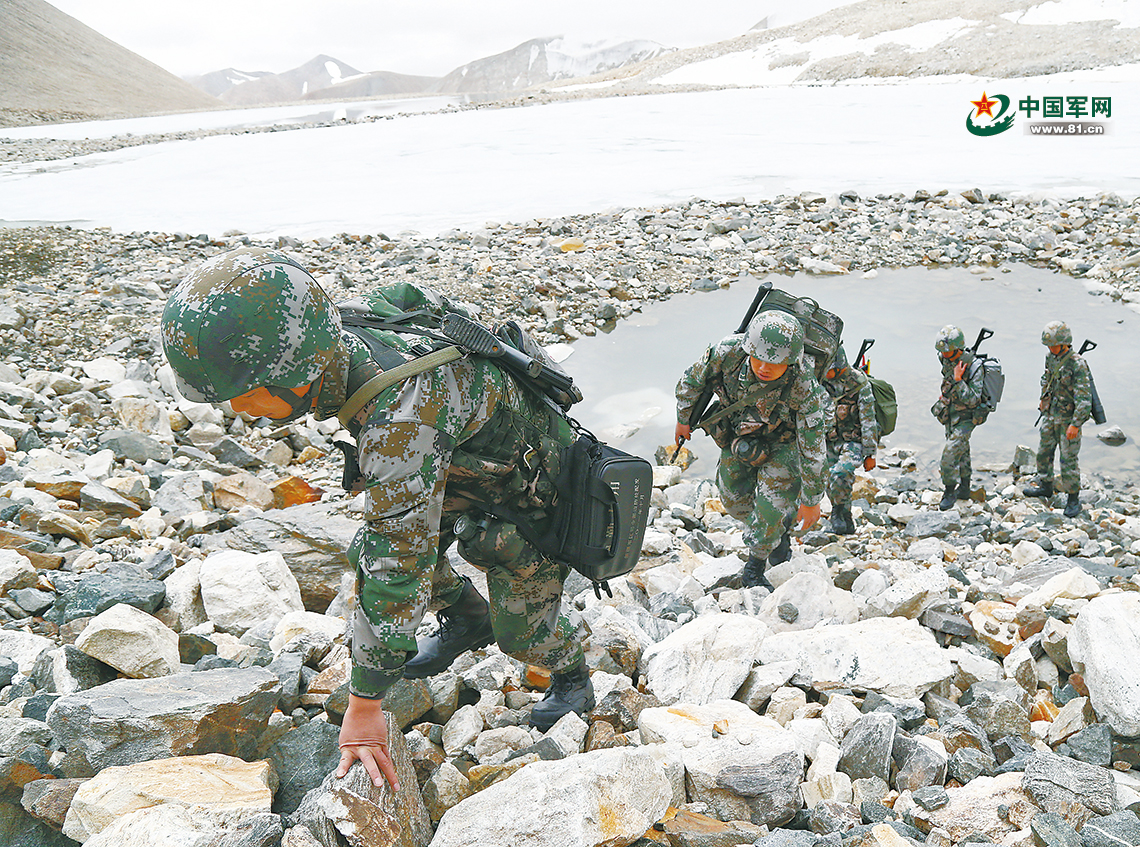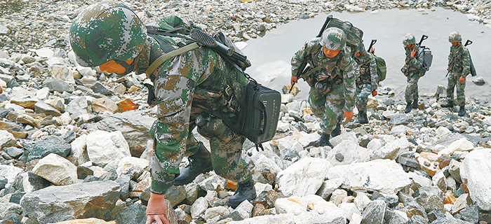 巡逻途中,李晓斌走在最前面探路。
