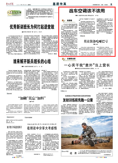 实战化既是“化人”,也是“化装备”,二者缺一不可。当前,实战化训练中,过度使用装备、超性能使用装备等问题不同程度存在,必须杜绝。