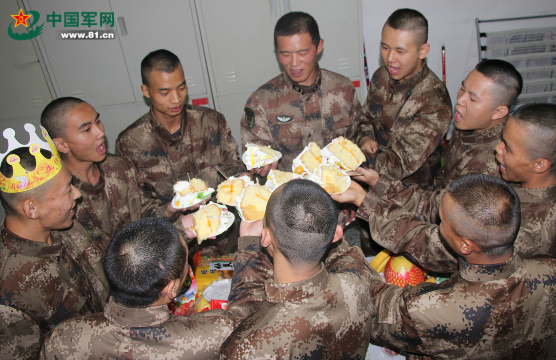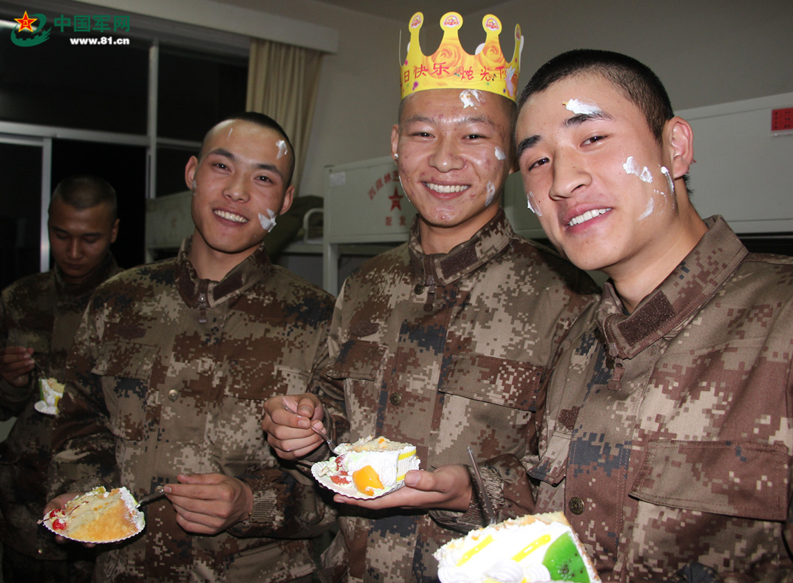 第一次过集体生日,这也许是他们最难忘的回忆。生命中的每一个瞬间,都是值得回忆的,尤其是那些与众不同的经历。在军营过生日,最讲究的是平淡,一个简单的生日蛋糕,一瓶浓浓的酸酸乳,加上战友们浓浓的祝福,在平静而又美好的时光中长大了一岁。远离了城市的喧嚣,寂静的军营里,他们见证了一个又一个不平凡的经历。