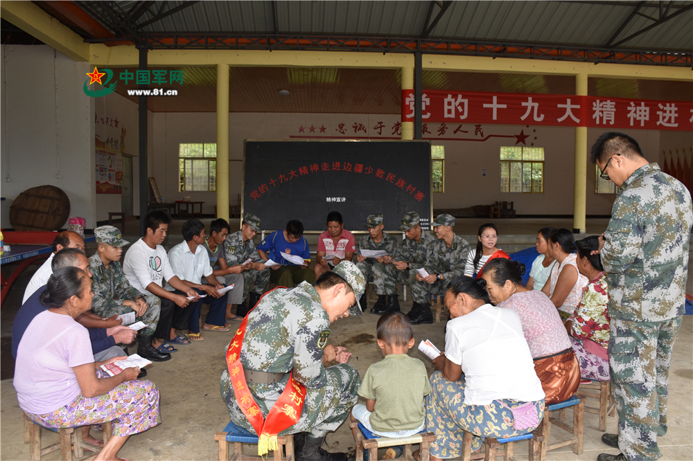 为使村民能够更形象的了解相关精神,该连官兵还结合精心准备的挂图为村民讲解十九大的相关常识,将具体的政策法规制作成折页发放到现场村民手中。宣讲结束,村民与宣讲队成员围坐一起,促膝而谈。听着国家对他们的优待政策越来越多,傣族大妈万小焕最为激动,拉着傣语宣讲员段灿辉聊起了这几年灾后重建的变化。