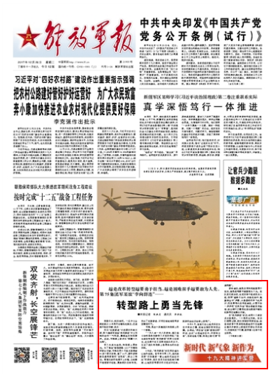 作为“机降渗透”示范课目的演示者,第75集团军某旅“李向群连”中士邓锋的动作一气呵成,赢得战友阵阵掌声。此前,邓锋被上级评为“南疆十大先锋”。军人生来为战胜,转型路上勇争先。邓锋,是这个英模连队转型路上的一个缩影。请关注今日出版的《解放军报》的文章——