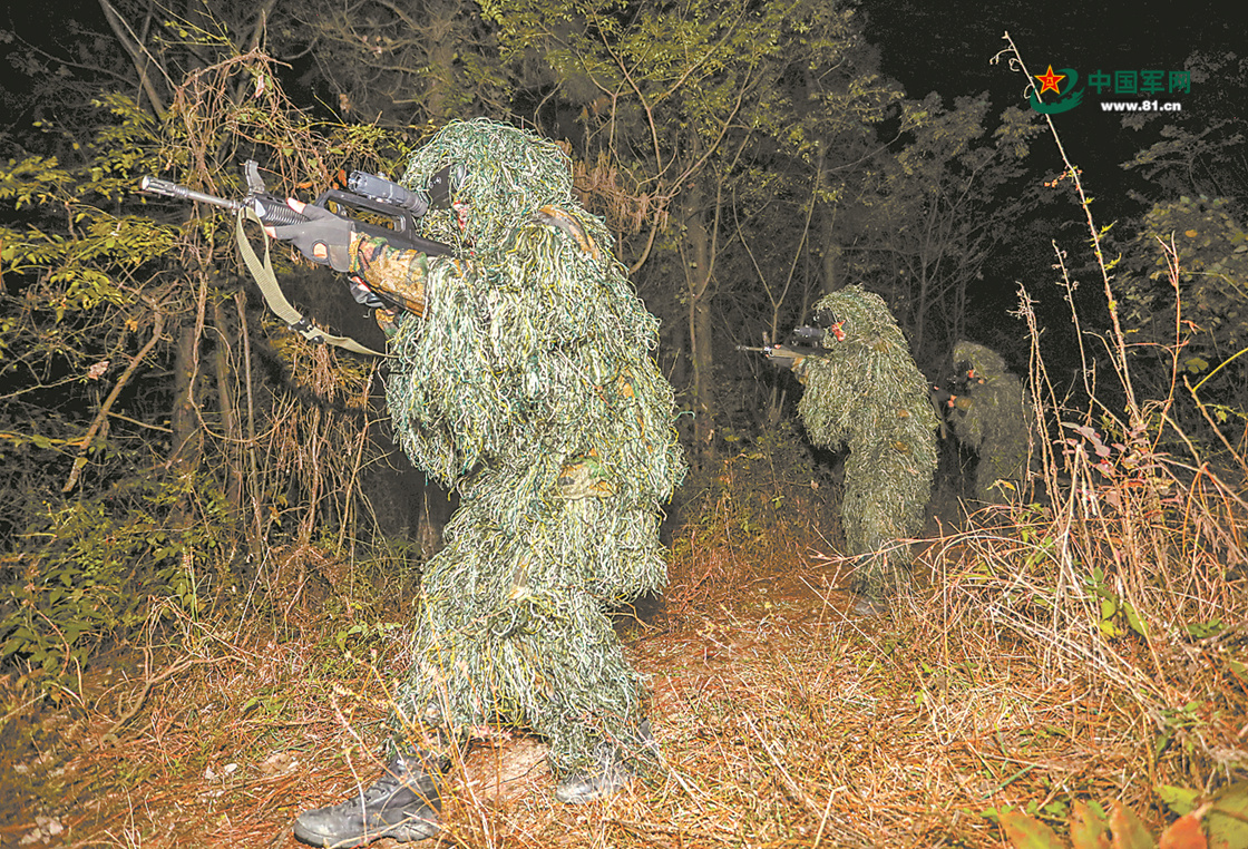 侦察兵夜间抵近侦察。
