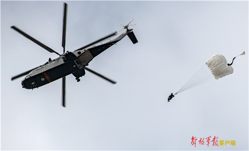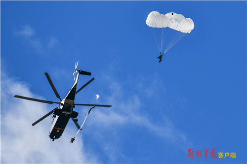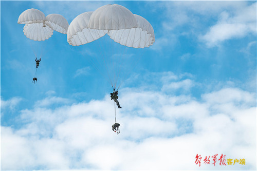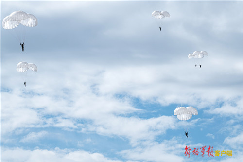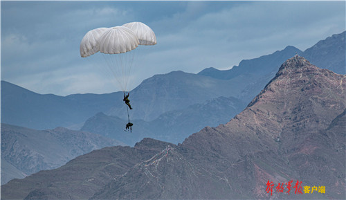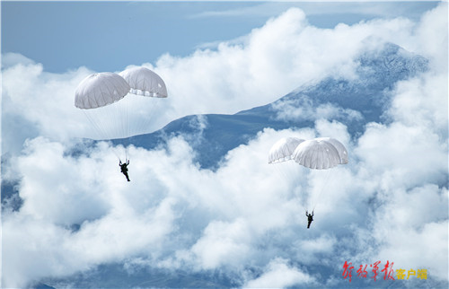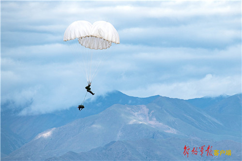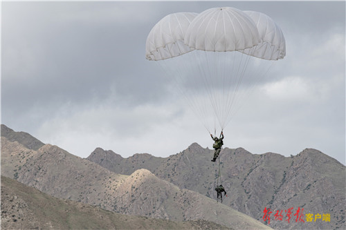 近日,西藏军区某特战旅,在青藏高原某伞降训练场,开展高海拔地区低空武装伞降训练。参训队员按作战要求编组,随伞具携带近50斤重吊挂包,开展低空伞降训练,锤炼部队快速突击渗透能力。