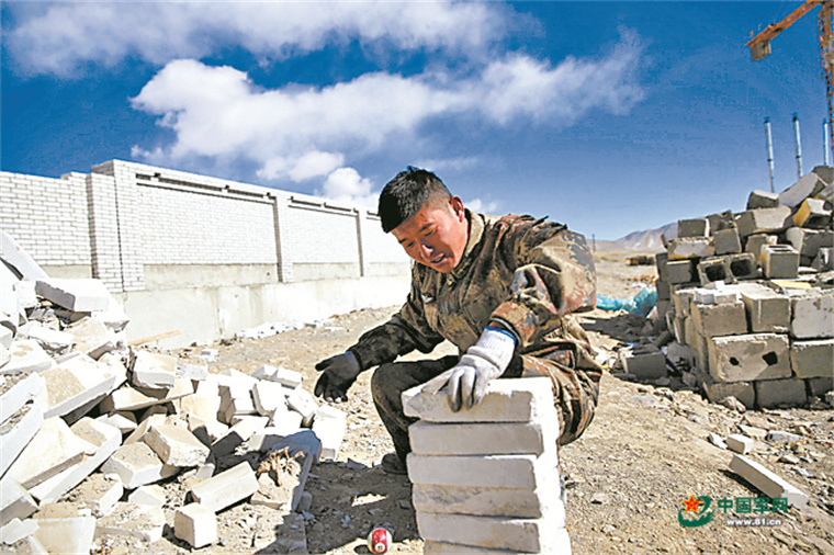 新疆军区某信息通信旅副营长张艳锋动手建设营区。