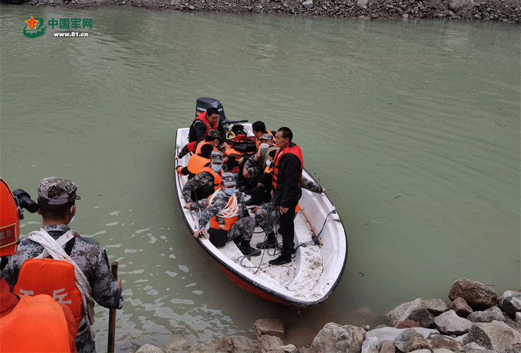该旅通过无人机侦测发现灾区山谷里的一个村落有受困群众,但是由于山体滑坡、塌方,通往该村子的道路都已阻断。时间就是生命,该旅旅长周祖全率领先遣队驾驶冲锋舟渡过河流展开搜救,最终顺利救回数名受困群众。