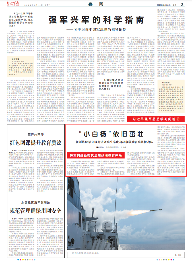 活动中,该军分区还邀请了一批优秀官兵代表走上讲台,讲述自己在“小白杨精神”感召下矢志强军、建功边防的动人故事,让官兵当主角、站“C位”,增强思想政治教育吸引力、感染力。
