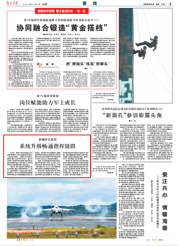 此前,为充分挖潜信息化装备性能,他们专门邀请技术专家上门指导,在升级完善车载指挥信息系统基础上,更新了装备通信参数,优化了战时编组网络规划,确保作战指挥链路高效畅通。