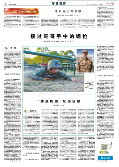 “这就是我心目中青年该有的样子。”肖荣基说,“哥哥牺牲后,我只有一个想法,接过哥哥手中的钢枪,带着哥哥未完成的梦想,在火热军营里干出一番事业。”