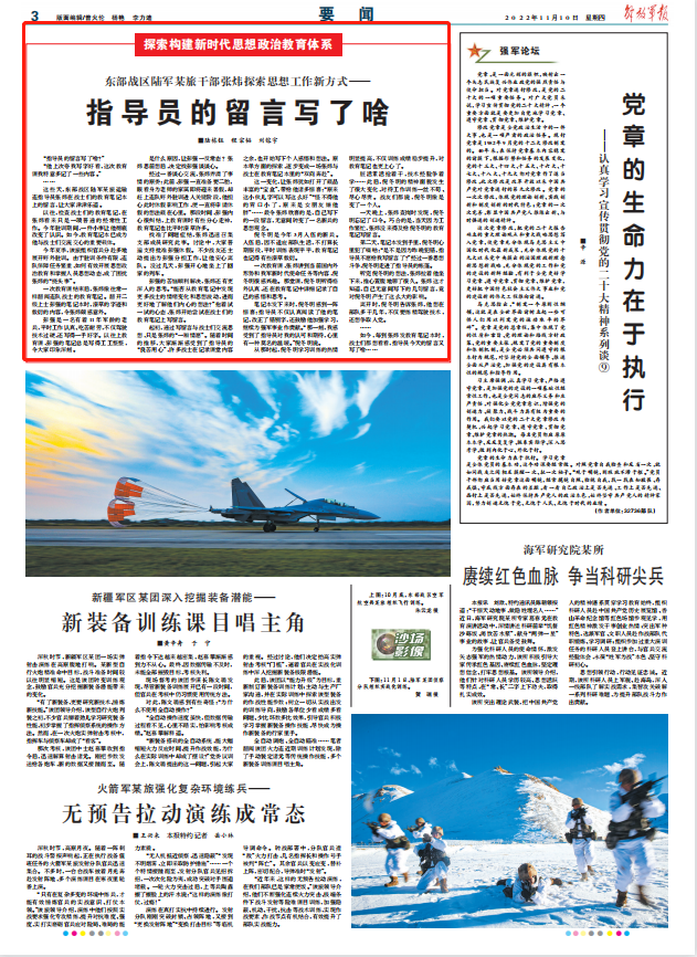这些天,东部战区陆军某旅运输连指导员张炜在战士们的教育笔记本上的留言,让大家津津乐道。