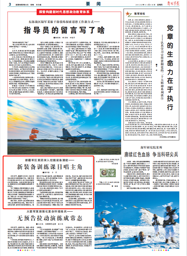 “新装备搭载的全自动系统,能大幅缩短火力反应时间、提升作战效能,为什么在实际训练中却成了摆设?”党委议训会上,陈文璐提出的这一问题,引起大家的重视。经过讨论,他们决定抬高实弹射击考核“门槛”,逼着官兵在实战化训练中深入挖掘新装备极限潜能。