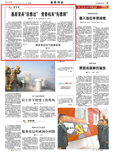 服务基层应当超前谋划,在官兵可能遇到困难前解决困难,在官兵可能需要服务前送上服务,用实际行动做好暖心惠兵工作。