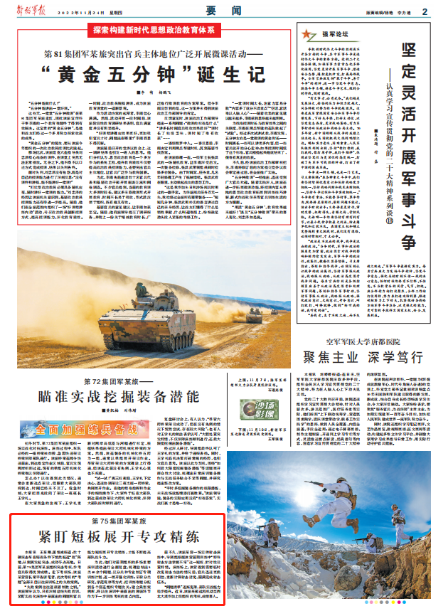 “失败案例往往蕴藏着制胜之钥。”该旅领导认为,只有深刻总结失败教训,紧盯实战化演练中暴露出的问题和官兵能力短板展开专攻精练,才能不断提高部队战斗力。