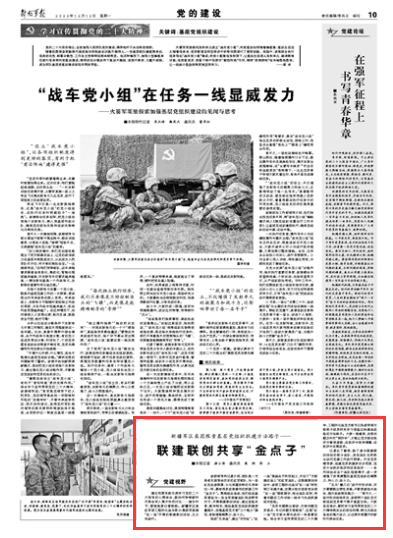 记者还了解到,除了参与联建联创活动的部分连队,其他连队也积极主动对党建工作进行探索。开设党员辅导课、组建党员抓建抓训示范班、党员大会抓好批评和自我批评……一系列活动在各个连队陆续展开,进一步增强了改革调整后基层党组织的凝聚力、向心力、战斗力。