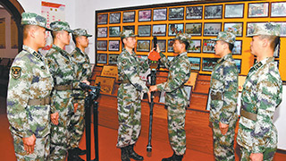 新兵王志豪从连长手中接过钢枪,立誓要苦练打赢本领、锻造钢铁意志,以坚定的从军信念投身训练,在父亲曾经的战位上建功立业。新兵,授枪仪式