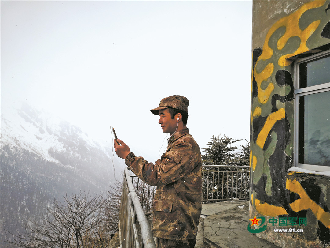 西藏军区某边防团,一名战士与妻子视频通话。