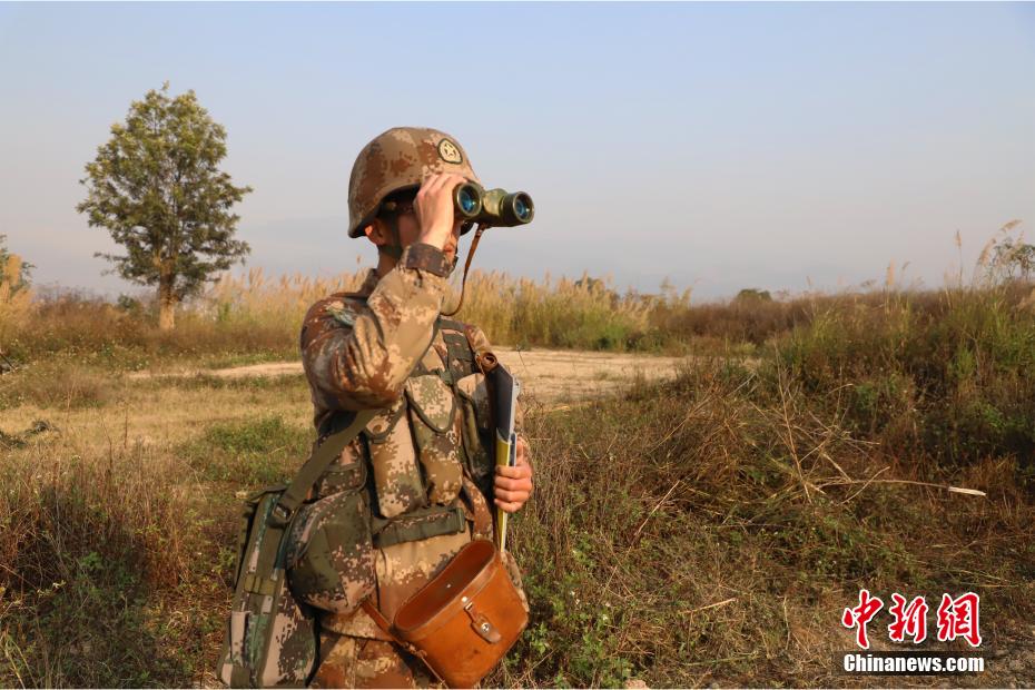图为官兵测量瞄准。 吴佳翔 摄